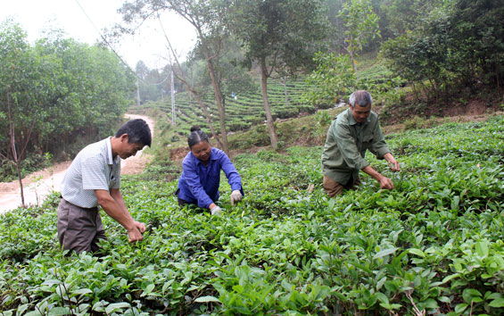 Cho xe bon bon chạy theo những chuyến xe chở nông sản trên tuyến đường bê tông chạy qua những rừng cây, đồi chè xanh mướt mới cảm nhận được cuộc sống nơi đây đang chuyển biến tích cực. Ông Trần Văn Quốc, Trưởng xóm Lát Đá chia sẻ với chúng tôi: Những năm mới chuyển về đây sinh sống, người dân quanh năm chỉ biết trồng lúa, nuôi thêm con gà, con lợn để cải thiện thu nhập. Một số hộ san đất đồi để trồng giống chè trung du, mỗi vụ bán được 10-15kg chè khô là nhiều. Hầu hết các hộ dân trong xóm là người dân tộc Sán Dìu nên vẫn giữ những thói quen canh tác nông nghiệp lạc hậu, bởi vậy nghèo khó cứ mãi bám riết. Thế rồi, nhờ sự tích cực tuyên truyền, vận động của các đoàn thể trong xã, xóm mà người dân đã quan tâm đưa các cây, con giống mới vào nuôi, trồng. Cùng với đó, xã cũng tạo điều kiện cho người dân được tham gia các lớp tập huấn khoa học kỹ thuật để áp dụng vào điều kiện canh tác của gia đình.