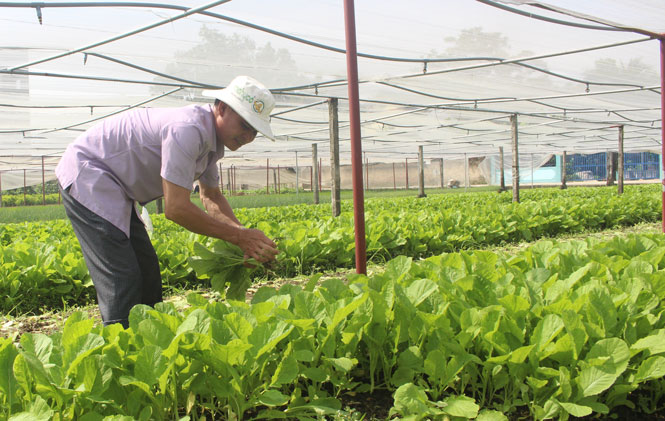 Chia sẻ về quá trình làm rau, ông Mạnh cho biết: Hằng năm, vợ chồng ông dành từ 1-2 sào ruộng để trồng rau nhằm nâng cao thu nhập. Năm 2015, ông chuyển sang trồng rau theo phương pháp an toàn với diện tích hơn 2.000m2 với các loại rau như: su hào, bắp cải, súp lơ... Theo ông Mạnh, trong số các loại rau đang trồng thì rau cải là loại rau khó trồng nhất, đặc biệt là ở thời điểm trái vụ (khoảng tháng 8, 9 hằng năm). Bởi, loại rau này dễ bị sâu bệnh, tốn nhiều công chăm sóc nhưng ưu điểm là thời gian ngắn, thị trường khan hàng nên giá bán cao hơn so với sản xuất đúng mùa. Ban đầu, vì chưa nắm rõ kỹ thuật nên rau thường xuyên bị sâu bệnh, lá vàng úa rồi chết dần. Để khắc phục những hạn chế đó, ngoài việc tích lũy kinh nghiệm qua các vụ trồng, ông Mạnh còn tích cực tìm hiểu trên sách, báo, tivi và đi thực tế mô hình ở nhiều nơi. Sau nhiều nỗ lực, cố gắng, ông đã xây dựng thành công mô hình trồng rau an toàn (chủ yếu là rau cải ăn lá), mang lại hiệu quả kinh tế.