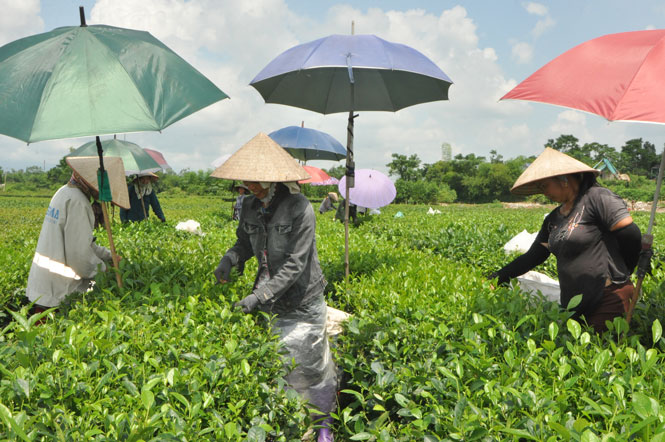 Về xã Bình Sơn một ngày đầu tháng 9, đi qua những con đường bê tông uốn lượn đến các xóm Khe Lim, Bình Định 1, Bình Định 2, Bình Định 3, Tiền Tiến…, chúng tôi thấy người dân đang hối hả thu hoạch những búp chè xanh non trong tiết trời Thu. Ông Nguyễn Phúc Thái, Trưởng xóm Khe Lim cho biết: Xóm hiện có gần 100 hộ dân thì hầu hết các hộ đều trồng chè. Trước đây, người dân chủ yếu là trồng giống chè trung du cho năng suất, chất lượng thấp, thì nay, với 25ha diện tích, người dân trong xóm đã chuyển đổi sang trồng giống chè LDP1 cho năng suất, chất lượng cao hơn. Cùng với đó, Thành phố đang triển khai xây dựng vùng trồng chè hữu cơ 2ha nên bà con càng chú ý trong việc chăm sóc, chế biến chè, đáp ứng yêu cầu ngày càng cao của khách hàng.