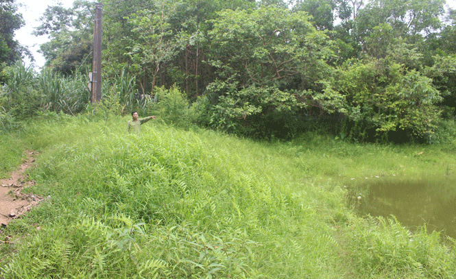 Theo chỉ dẫn của người dân, chúng tôi tới khu vực hồ thủy lợi đội 8 để thực tế. Qua quan sát, một phần lòng hồ và tràn xả lũ đã bị đất bồi lấp, một số hộ dân còn trồng cây lên phần đất này khiến việc thoát nước của hồ khi mưa lũ khó khăn. Cũng theo phản ánh của người dân, mùa mưa lũ năm nào khu vực hồ Đội 8 cũng xảy ra tình trạng nước dâng cao, khiến người dân bất an. Nhất là vào năm 2014, sau nhiều trận mưa to liên tiếp, mực nước trong hồ dâng tới hơn 1,5m so với ngày thường, khiến giao thông khu vực bị định trệ, toàn bộ phần sân của 2 điểm trường mần non và tiểu học của thị trấn Sông Cầu bị ngập sâu.