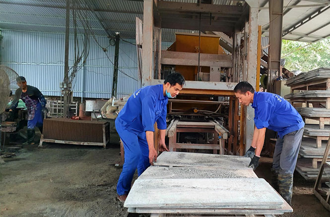 Đến thăm Công ty TNHH Sơn Nam, đóng chân trên địa bàn phường Tân Lập, chúng tôi được ông Nguyễn Kim Sơn, Phó Giám đốc Công ty chia sẻ: Đơn vị chúng tôi chuyên sản xuất các loại gạch xây công trình, lát vỉa hè, ống cống thoát nước, cọc ép bê tông. Năm 2020, do ảnh hưởng bởi dịch COVID-19, doanh thu của Công ty đã sụt giảm một nửa. Bước sang năm 2021, Công ty tiếp tục gặp khó khăn do giá sắt, thép, xăng dầu, các loại vật liệu khác như: cát, sỏi, xi măng leo thang trong khi sản phẩm bán chậm. Điều đó tại bắt buộc chúng tôi phải đưa ra các giải pháp để thích ứng trong điều kiện sản xuất, kinh doanh mới. Theo đó, chúng tôi vừa đầu tư dây chuyền sản xuất cọc dưỡng lực trên 5 tỷ đồng vào sản xuất, đưa máy mài tự động vào để sản xuất gạch tăng năng suất, tạo mẫu mã sản phẩm đẹp, có sức cạnh tranh trên thị trường. Ngoài ra, Công ty còn thực hiện tốt các chế độ đãi ngộ đối với người lao động để họ yên tâm làm việc, cống hiến cho Công ty.