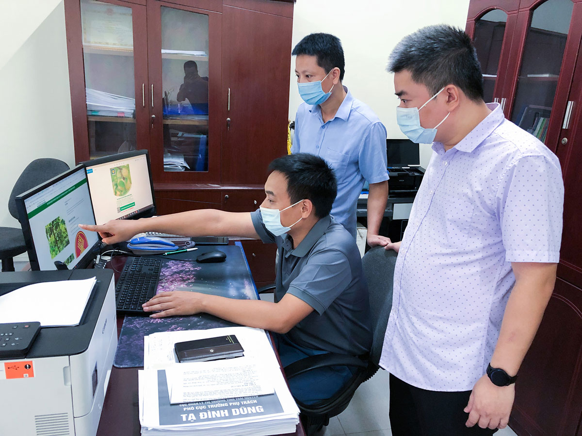 Cán bộ Trung tâm Xúc tiến thương mại cập nhật thông tin về sản phẩm na Võ Nhai lên trang đầu của các kênh thương mại điện tử, kênh quảng bá do Sở Công Thương quản lý.