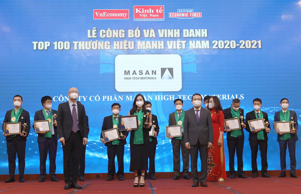 Tại Lễ Công bố và Vinh danh Thương hiệu mạnh Việt Nam 2020-2021 mới được tổ chức tại Hà Nội, Công ty cổ phần Masan High-Tech Materials đã vinh dự được xếp hạng trong Top 100 Thương hiệu mạnh nhờ những nỗ lực xuất sắc của doanh nghiệp trong việc thích ứng, đổi mới, sáng tạo để trụ vững và tăng trưởng trong đại dịch COVID-19.