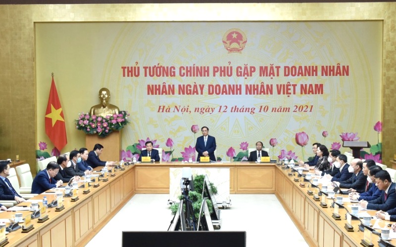 Sáng 12-10, tại Trụ sở Chính phủ, Thủ tướng Phạm Minh Chính gặp mặt cộng đồng doanh nhân, doanh nghiệp (DN) Việt Nam nhân Ngày Doanh nhân Việt Nam (13/10). Cùng dự, có các Phó Thủ tướng Chính phủ Lê Minh Khái và Lê Văn Thành; đại diện lãnh đạo các bộ, ngành, 72 doanh nhân đại diện cho các thành phần kinh tế cả nước.