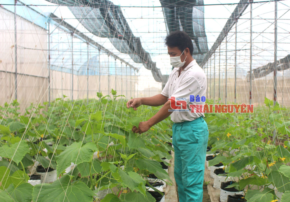 Mô hình trồng dưa chuột Nhật Bản trong nhà lưới của gia đình anh Dương Văn Huynh, ở tổ dân phố Pha, phường Lương Sơn (T.P Sông Công) với diện tích 1.200m2, dự kiến cho thu hoạch 4,5 tấn quả trong dịp Tết Nguyên đán.