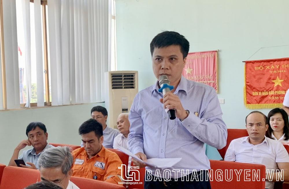 Đại diện Công ty TNHH Khai thác Chế biến khoáng sản Núi pháo phát biểu tại buổi đối thoại.