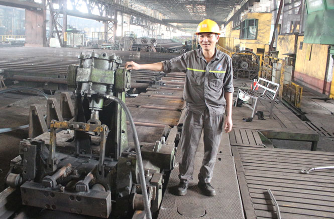 Chúng tôi đến Nhà máy vào một ngày đầu tháng 4. Đứng cạnh dây chuyền cán thép nóng như lửa đổ, mồ hôi túa ra liên tục nhưng anh Trường vẫn cặm cụi ghi chép các con số vào bản vẽ cơ khí. Khi thấy chúng tôi tới, anh mới dừng công việc lại. Qua một đồng nghiệp của anh, chúng tôi được biết anh đang tranh thủ kiểm tra lại hệ thống bàn lật phôi thép tự động - một trong ba sáng kiến cải tiến kỹ thuật trong năm vừa qua của anh.