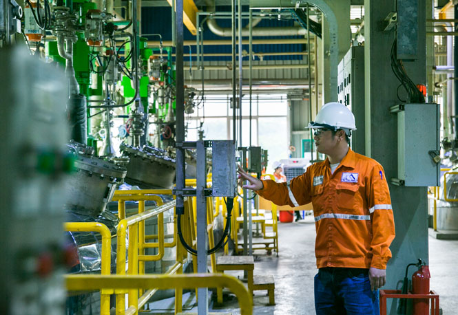 Kỹ sư vận hành thiết bị sản xuất trong Nhà máy.