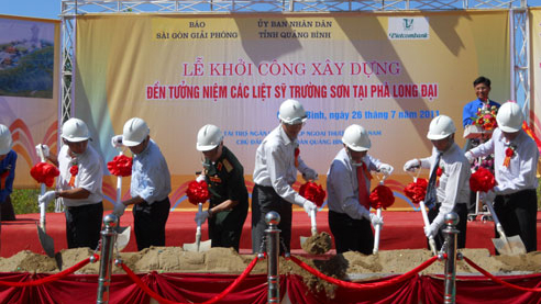 Ngày 26/7, UBND tỉnh Quảng Bình và Tỉnh Đoàn Quảng Bình phối hợp với báo Sài Gòn Giải phóng, Ngân hàng Thương mại Cổ phần ngoại thương Việt Nam (Vietcombank) tổ chức Lễ khởi công xây dựng Đền tưởng niệm liệt sỹ Trường Sơn tại phà Long Đại, xã Hiền Ninh, huyện Quảng Ninh, tỉnh Quảng Bình.
