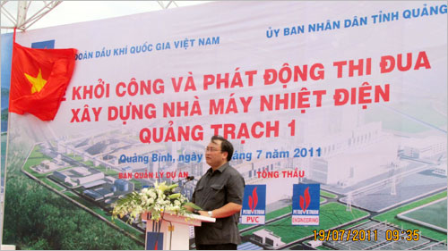 Ngày 19/7, tại huyện Quảng Trạch, tỉnh Quảng Bình, Tập đoàn dầu khí quốc gia Việt Nam và UBND tỉnh Quảng Bình phối hợp tổ chức lễ khởi công và phát động thi đua xây dựng Nhà máy Nhiệt điện Quảng Trạch 1. Phó Thủ tướng Chính phủ Hoàng Trung Hải phát lệnh khởi công.