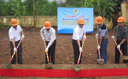 Nhân kỷ niệm 83 năm Ngày thành lập Công đoàn Việt Nam (28/7/1928 - 28/7/2012) và chào mừng đại hội công đoàn các cấp, Liên đoàn Lao động (LĐLĐ) tỉnh đã phối hợp với Công ty TNHH Hanh Hạnh (Võ Nhai) tổ chức khởi công xây dựng trụ sở làm việc của LĐLĐ huyện Võ Nhai (Ảnh).
