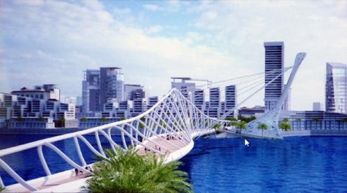 Ông Đặng Minh Trường, Tổng Giám đốc Tập đoàn Sun Group cho hay, thực hiện chủ trương của lãnh đạo TP Đà Nẵng, tập đoàn này dự kiến đầu tư 35 triệu USD xây dựng cầu đi bộ qua sông Hàn từ cuối đường Đống Đa (bờ Tây) sang dự án Olalani (bờ Đông sông Hàn).