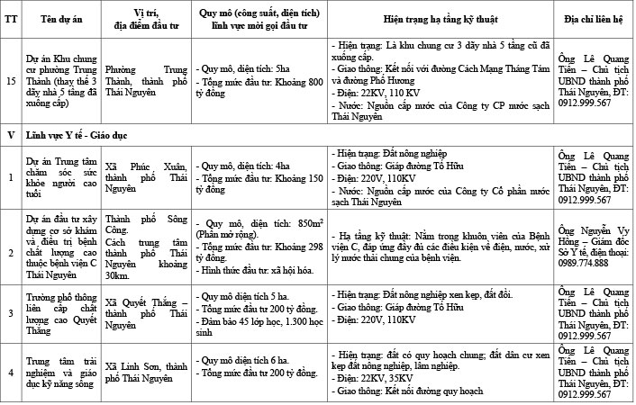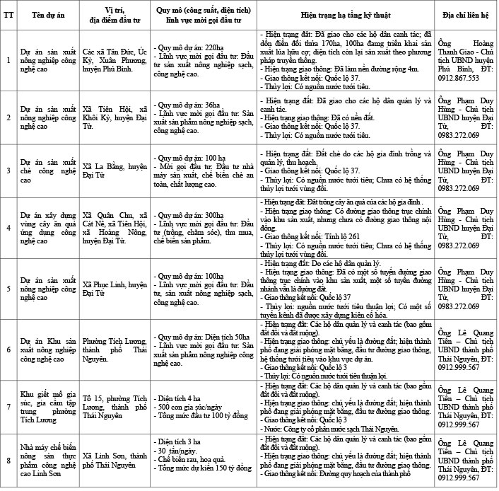 - Thông tin liên hệ: Ông Nguyễn Đình Việt -Giám đốc, số điện thoại 0983530000; Email: vietnd@thainguyen.gov.vn