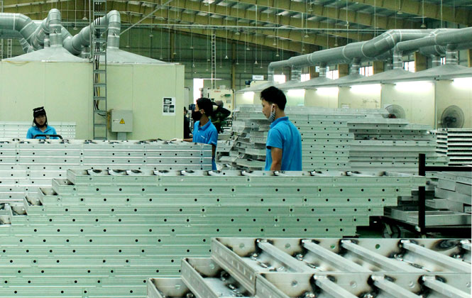 Sản xuất các sản phẩm nhôm tại Công ty TNHH Alutec Vina (Khu công nghiệp Điềm Thụy). Ảnh: Nhóm PV.