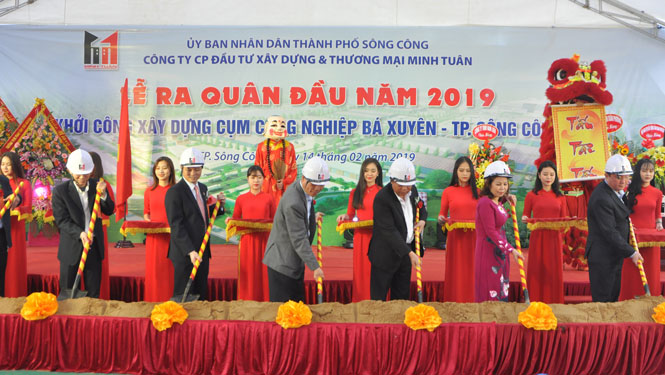 Sáng 14-2, UBND T.P Sông Công phối hợp với Công ty cổ phần Đầu tư xây dựng và Thương mại Minh Tuân (có trụ sở tại T.P Hà Nội) tổ chức Lễ ra quân đầu năm 2019 Khởi công xây dựng Cụm công nghiệp Bá Xuyên (T.P Sông Công). Đến dự có các đồng chí Ủy viên Ban Thường vụ Tỉnh ủy: Vũ Hồng Bắc, Phó Bí thư Tỉnh ủy, Chủ tịch UBND tỉnh; Nguyễn Khắc Lâm, Phó Chủ tịch Thường trực HĐND tỉnh; Dương Xuân Hùng, Bí thư Thành ủy, Chủ tịch HĐND T.P Sông Công.