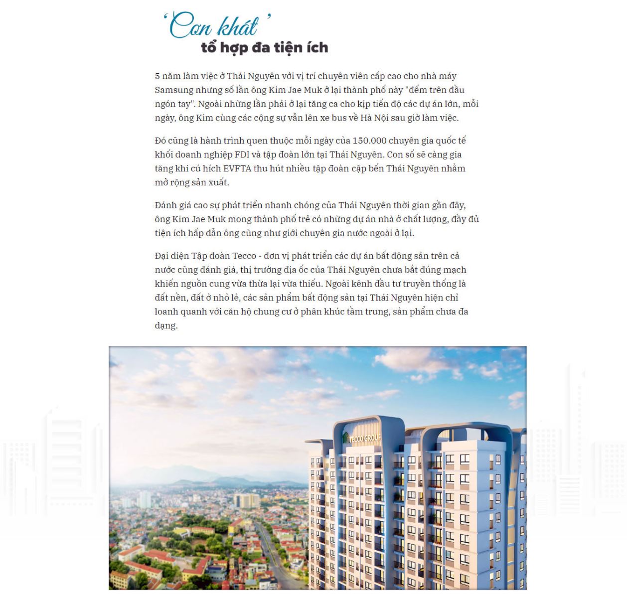 Tecco Elite City đáp ứng nhu cầu lưu trú của chuyên gia nước ngoài