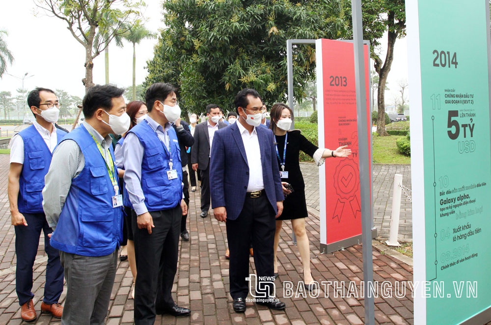 Cũng tại đây, các đại biểu tham dự cùng ôn lại hành trình 9 năm có mặt tại Thái Nguyên của SEVT, qua từng “nấc thang”, những dấu ấn và thành quả nổi bật. Tháng 10-2012, Chủ tịch Tập đoàn Samsung khi đó là ông Lee Kun Hee đến thăm nhà máy Samsung điện tử Việt Nam tại tỉnh Bắc Ninh, chỉ vài tháng sau đó, quyết định đặc biệt được Samsung công bố là đầu tư nhà máy thứ 2 tại Thái Nguyên (tổng vốn đăng ký ban đầu là 2 tỷ USD). Đây là một quyết định đầu tư có tính chiến lược của Samsung Việt Nam. Đến tháng 3-2013, Samsung khởi công Nhà máy SEVT và chỉ 1 năm sau, Dự án được tăng vốn đầu tư thêm 3 tỷ USD.
