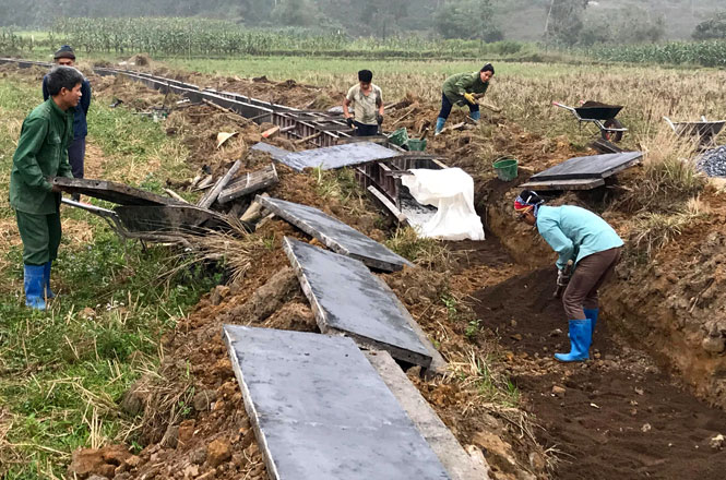 Không chỉ ở xã Phấn Mễ, dạo một vòng quanh cánh đồng khu vực xóm Làng Ngòi, Ao Trám, Đồng Nghè… của xã Động Đạt, chúng tôi thấy hệ thống kênh mương ở đây đã được nạo vét sạch sẽ, ruộng đã vạc sạch cỏ bờ và cày ải. Ông Vi Văn Thái, Bí thư Chi bộ xóm Làng Ngòi cho biết: Bà con trong xóm chủ yếu dẫn nước từ trạm bơm Làng Ngòi. Năm nay, nguồn nước ở đây khá nhiều vì ngay từ đầu mùa mưa, tổ đội thủy nông của xóm đã tiến hành tích nước để phục vụ bà con sản xuất vụ xuân. Đầu tháng 1 vừa qua, bà con trong xóm đã tổ chức ra quân nạo vét toàn bộ hệ thống kênh mương. Hiện nay, các hộ dân đang thu hoạch nốt diện tích ngô vụ đông, sau đó sẽ tiến hành bơm nước vào ruộng để cày bừa, gieo cấy.