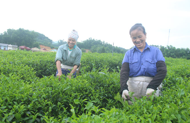 Bên cạnh đó, người dân trong làng nghề còn tích cực tham gia các lớp tập huấn kỹ thuật do tỉnh, huyện tổ chức. Việc tiếp cận các dự án hỗ trợ, phát triển cây chè đã giúp người dân thay đổi nhận thức trong trồng và chế biến, việc chăm bón ra sao, cách bón phân, phòng trừ sâu bệnh như thế nào đều được người dân học hỏi, cùng nhau trao đổi kinh nghiệm. Là một trong những hộ có diện tích chè nhiều nhất trong làng nghề, anh Phạm Xuân Đức cho biết: Trước đây, chúng tôi chủ yếu chăm sóc chè bằng kinh nghiệm nên năng suất không cao, lứa thì được nhiều, lứa được ít, thậm chí bón phân, thuốc bảo vệ thực vật cũng theo cảm tính. Do vậy, chi phí bỏ ra nhiều nhưng không hiệu quả. Sau khi tham gia các lớp tập huấn về sản xuất chè VietGAP và đi học tập kinh nghiệm nhiều nơi, tôi đã mạnh dạn chuyển đổi 6.000m2 chè trung du sang trồng chè cành. Việc trồng chè an toàn giúp tiết kiệm khoảng 1/3 lượng phân bón so với trước kia. Thêm vào đó, các loại thuốc bảo vệ nguồn gốc thảo mộc, có nguồn gốc xuất xứ rõ ràng, hiệu quả nên chỉ cần sử dụng đúng liều lượng quy định là sâu bệnh hại đã không còn, lại đảm bảo an toàn cho người sản xuất và sử dụng. Trung bình mỗi lứa, gia đình tôi thu được khoảng 1,8-2 tạ chè búp khô. Với giá bán trung bình từ 150-180 nghìn đồng/kg, cây chè đang đem lại thu nhập ổn định cho gia đình tôi.
