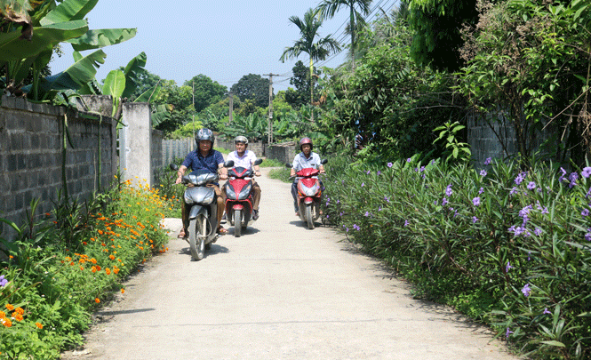 Bất chợt từ cụm loa thanh xóm vang lên dòng thông báo về tình hình phòng chống dich COVID-19; về sản xuất mùa vụ và phong trào thể thao, rèn luyện thân thể theo gương Bác Hồ vĩ đại. Tôi đứng lại bên đường nghe bản tin, và gặp dưới bóng nắng đổ dài của chiều muộn một số bà con rủ nhau ra đường làm vệ sinh môi trường. Bà Vương Thị Thành khoe: Từ 3 năm nay, gia đình tôi cũng như các hộ trong xóm rủ nhau trồng hoa đoạn lề đường trước cửa từng nhà. Còn bà Bùi Thị Tươi cho biết: Đã thành nếp, các hộ dân tự giác quyét dọn hết đoạn đường trước nhà chứ không trông chờ địa phương phát động tổng vệ sinh mới tham gia.