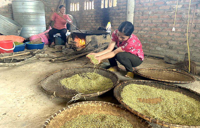 Từ ngày cốm trở thành hàng hóa, diện tích lúa nếp vải của xã cũng tăng dần. Gia đình ông Đào Văn Long, xóm Nhất Tâm là một trong những hộ chuyên làm cốm bán mỗi vụ mùa về. Ông cho hay: Gia đình tôi có khoảng 6 sào ruộng, trước đây tôi vẫn cấy lúa giống Khang Dân nhưng vài năm nay, tôi đã chuyển sang cấy giống lúa nếp cái hoa vàng để làm cốm bán. Hiện nay, ngoài 6 sào ruộng của gia đình, tôi thuê thêm ruộng của người dân để cấy, mỗi vụ tôi cấy khoảng 1 mẫu lúa nếp, từ tháng 8 đến tháng 10 Âm lịch, mỗi ngày tôi làm từ 30-50kg cốm.