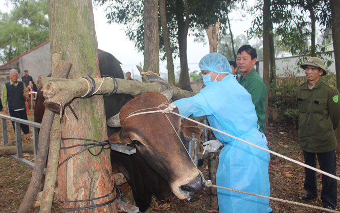 Ngày 29-12, Chi cục Chăn nuôi, Thú y và Thủy sản (Sở Nông nghiệp - PTNT) đã phối hợp với T.X Phổ Yên tổ chức triển khai tiêm phòng thí điểm vắc xin phòng bệnh viêm da nổi cục trên trâu, bò tại xã Tiên Phong. Nơi có 5 con bò của 4 hộ dân thuộc xóm Hòa Bình được phát hiện mắc bệnh viêm da nổi cục trên trâu, bò vào tháng 11 vừa qua.