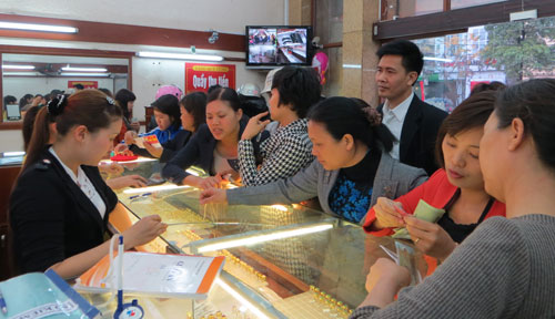 Ngày 19/2, (mùng 10 tháng Giêng) nhiều người dân Thái Nguyên đổ xô đi mua vàng do ngày này được coi là ngày thần tài sẽ giúp mang tài lộc đến cả năm. Do vậy giá vàng đã đồng loạt tăng 20 -30 nghìn đồng/chỉ so với hôm qua.