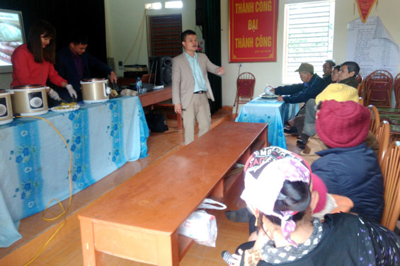 Chiều thứ bảy, tại Nhà văn hóa tiểu khu Dộc Mấu, thị trấn Đu (Phú Lương) khá nhộn nhịp. Tôi cứ ngỡ bà con tổ chức họp nhưng hỏi ra mới biết có một doanh nghiệp đến tri ân khách hàng và giới thiệu sản phẩm mới. Trên giấy mời ghi rõ: Mỗi đại biểu tới dự được tặng một bóng điện Led siêu tiết kiệm trị giá 80.000 đồng. Ngoài ra, còn có cơ hội nhận tổng cộng 90 phần quà với các mức 100.000, 200.000 và và 250.000 đồng. Doanh nghiệp có tên khá lạ: Công ty TNHH Thương mại và Ứng dụng công nghệ Việt Nam (địa chỉ tại quận Nam Từ Liêm, Hà Nội), mới thành lập từ tháng 5-2016, chưa hề tổ chức bán hàng hoặc giới thiệu sản phẩm tại địa phương nên khó có thể nói là... tri ân.