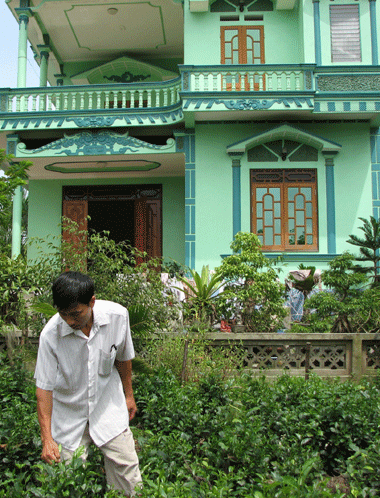 Ngôi nhà anh Phạm Trần Quang, xóm Hồng Thái 1, xã Tân Cương (T.P Thái Nguyên) như một biệt thự nằm giữa những vạt chè xanh. Trong nhà có đầy đủ những tiện nghi sinh hoạt đắt tiền cho thấy cuộc sống của gia đình anh khá vương giả. Anh cho biết: Mấy năm nay, gia đình anh khấm khá lên nhiều là nhờ vào nghề làm chè.