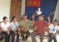 Vừa tới đầu xóm Thống Nhất, chúng tôi đã nghe văng vẳng tiếng hát then phát ra từ ngôi nhà văn hoá. Hỏi ra mới biết đây là buổi tập văn nghệ mà xóm duy trì thường xuyên dưới sự hướng dẫn của bác Triệu Minh Thực. Được biết, đó là bài hát “Ca ngợi quê hương Đức Lương đổi mới” do chính bác Thực, dân tộc Tày sáng tác. Tác phẩm này cũng vừa giành giải Nhất tại Hội diễn văn nghệ của xã.
