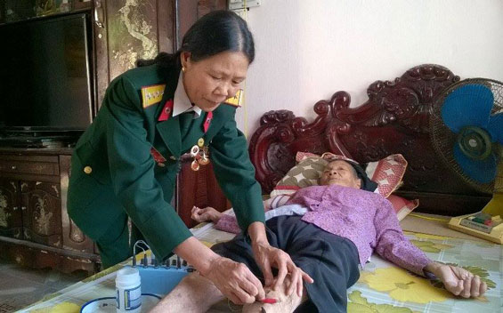 Bà Lệ cho chúng tôi xem sổ theo dõi sức khỏe có ghi tên và địa chỉ của người bệnh. Trong sổ có những em bé sơ sinh, người già với các bệnh khác nhau, nhẹ thì bị cảm sốt nhưng cũng có những người mắc bệnh nan y, thậm chí có những ca cấp cứu bà phải kịp thời sơ cứu trước khi hướng dẫn gia đình chuyển đi tuyến trên. Tiếng lành đồn xa, người dân tìm đến bà để chữa bệnh ngày một đông. Những người đến đây không chỉ cảm kích trước tấm lòng của Đại úy Võ Thị Lệ mà còn đánh giá cao về khả năng chữa bệnh bằng phương pháp châm cứu, bấm huyệt của bà. Trong đó có cả những người đã ngoài 90 tuổi như trường hợp của bà Dương Thị Thảo (sinh năm 1920, xã Vinh Sơn). Sau khi được châm cứu và kê đơn thuốc, bà Thảo vui vẻ nói: “Tôi bị viêm khớp gối mãn tính đã hơn 3 năm, mỗi khi trái gió trở trời, hai khớp gối lại sưng phù, đau nhức. Nhưng chỉ cần bà Lệ châm cứu, kê thuốc uống 2 - 3 ngày là cơn đau thuyên giảm. Bà không bao giờ lấy tiền chữa bệnh, bệnh nhân nào nài nỉ lắm thì bà chỉ nhận gói quà, hộp bánh cho họ vui”.