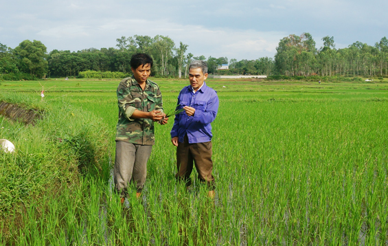 Ông Dương Bá Liêm, người có 4 sào ruộng nằm trong mô hình cánh đồng một giống của xóm đang chăm sóc lúa gần đó góp chuyện: Anh Bí thư Chi bộ trẻ, năng nổ, nhiệt tình lắm, nhà không có ruộng trong mô hình nhưng anh thường xuyên thăm đồng, trao đổi kinh nghiệm với bà con.