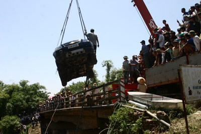 Sáng nay, 26/8, một đơn vị quân đội đã điều xe Zin 130 đến hiện trường, dùng tời kéo chiếc xe gặp nạn từ dưới sông lên bờ. Đến 1h30 chiều, công tác trục vớt cơ bản hoàn tất.
