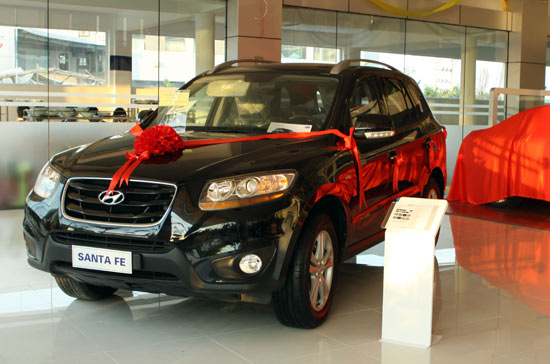Xuất hiện bên cạnh những mẫu xe mới mẻ như Sonata 2011, Genesis Coupe trong buổi lễ khai trương Hyundai Hà Đông, đại lý lớn nhất của Hyundai tại Hà Nội, mẫu SUV Santa Fe vẫn duy trì được sự hấp dẫn khi có người đẹp ở bên.
