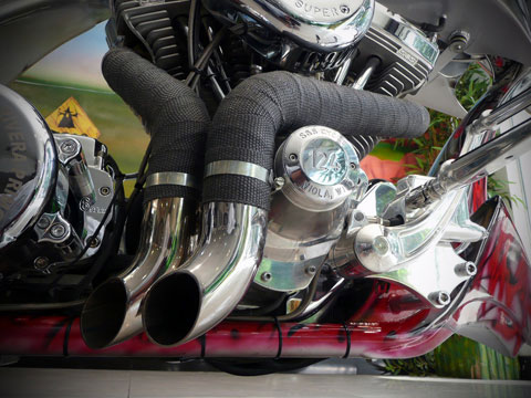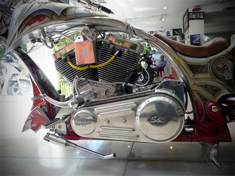 Xe độ tại Mỹ và từng tham gia ngày hội xế độ Sturgis với chiều dài hơn 2.800 mm. Cặp giảm xóc trước dài và toàn bộ hệ thống dây dẫn dầu thắng (phanh), dây đồng hồ tốc độ được giấu vào phía bên trong gọn gàng. Ngay cả trên tay lái, chỉ có dây ga đặt ở phía ngoài, còn hệ thống dây điện điều khiển cũng nằm gọn bên trong ống thép.