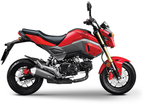 Thông số kỹ thuật cụ thể của Honda MSX 125cc 2017: Khối lượng bản thân 104kg, khoảng cách trục bánh xe 1.199mm, kích cỡ lốp trước 120/70-12 51L, lốp sau: 130/70-12 56L. Động cơ PGM-FI, 4 kỳ, 2 van, xy-lanh đơn, côn 4 số, làm mát bằng không khí, đường kính x hành trình pít-tông 52,4mm x 57,9mm, tỉ số nén 9,3:1, công suất tối đa 6,9kW/7.000 vòng/phút, mô-men cực đại 10,6 Nm/5.500 vòng/phút