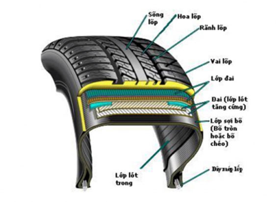 Lốp là thành phần quan trọng bậc nhất trên chiếc xe ô tô. Không chỉ là phần tiếp xúc trực tiếp với mặt đường, lốp xe còn là bộ phận nâng đỡ toàn bộ trọng lượng xe. Lốp xe được cấu tạo bởi thành lốp, tanh, vải bố, bố lốp và hoa lốp.