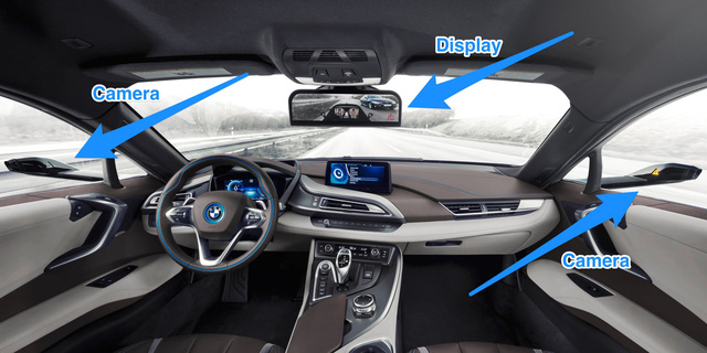 Đón đầu xu hướng mới này, nhà sản xuất xe sang Đức BMW đã giới thiệu chiếc xe không gương cửa i8 Mirrorless Concept tại Triển lãm hàng điện tử tiêu dùng - CES 2016).