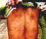 Những vết sẹo do bị roi vụt, kìm kẹp còn đầy khắp trên lưng, bụng Bình. Ông bà chủ dùng dây điện thắt nút quất liên tiếp vào mặt, lưng; dùng kìm kẹp vào mạng sườn; dùng dao chọc tiết lợn đâm thẳng vào đùi; dùng gót guốc nhọn nện vào vùng kín của Bình.