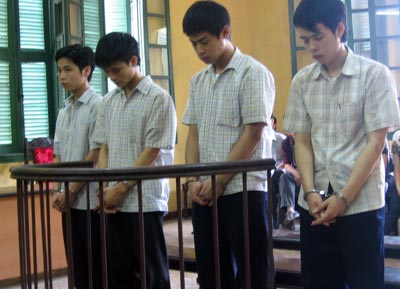 Tại phòng xử án của TAND Thành phố Hà Nội ngày 29/5, người ta thấy một bà mẹ mang theo lọ kẹo rồi tranh thủ giúi cho cậu con trai mình mấy chiếc. Con bà là một trong bốn thanh niên đang đứng trước vành móng ngựa, vẻ mặt còn đầy vẻ non nớt. Sau lưng bốn thanh niên - bị cáo này, khuôn mặt của bố mẹ và người thân họ nước mắt vòng quanh...
