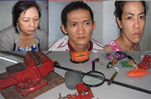 Tính đến chiều 9/12, cơ quan điều tra Công an huyện Bình Chánh, TP HCM đã tạm giữ 6 đối tượng trong đường dây mua bán ma túy quy mô lớn, gồm vợ chồng Lưu Ngọc Phúc (30 tuổi) - Phạm Thị Thu Thủy (27 tuổi), ngụ chung cư Cô Giang, quận 1; vợ chồng Lý Huy Khánh (34 tuổi) - Hà Thị Tuyền (39 tuổi, ngụ tại phường Cô Giang, quận 1), cùng Nguyễn Phước Hạnh và Châu Vĩnh Tài (23 tuổi, ngụ phường Cầu Ông Lãnh, quận 1), tạm giữ gần 800 viên ma túy tổng hợp, 8 bịch hàng đá, 1 súng bắn điện, 1 mã tấu và một số dụng cụ sản xuất thuốc lắc và sử dụng ma túy tổng hợp...