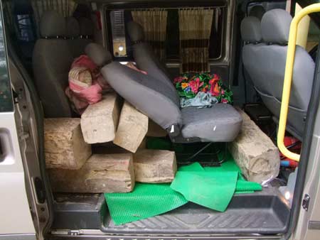 15 ngày trước, Đỗ Viết Giỏi lái xe ôtô mang biển số của quân đội và trang phục giả danh thiếu tá để vận chuyển gỗ trắc ra miền Bắc tiêu thụ.
