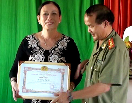 Sáng 27/5, Công an tỉnh Bình Định đã tặng giấy khen cho bà Lương Thị Nở, chủ cửa hàng vàng Ngọc Huy (thị trấn Tam Quan, huyện Hoài Nhơn) vì có tinh thần cảnh giác, mưu trí bắt nhiều tên trộm cắp vàng bạc.