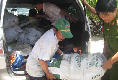 Sáng 2/7 trên đường Hồ Chí Minh thuộc huyện Bố Trạch, Quảng Bình, cảnh sát môi trường bắt giữ xe ôtô mang biển số nước ngoài chở khoảng 1.000 con rùa đá.
