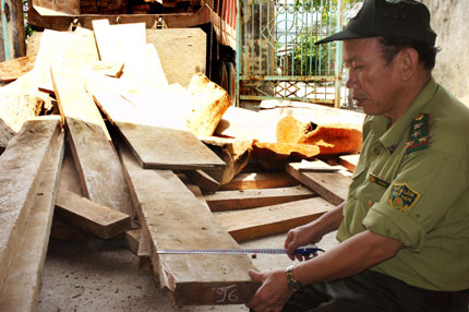Qua kiểm tra, ngoài 14,7 m3 gỗ nghiến có giấy tờ hợp lệ, số lượng gỗ không có giấy tờ trên 2 xe tải gồm: 1 m3 gỗ dâu, 2 m3 gốc, rễ gỗ dâu (gỗ thuộc nhóm 3), 0,7 m3 gỗ nghiến (gỗ thuộc nhóm 2).
