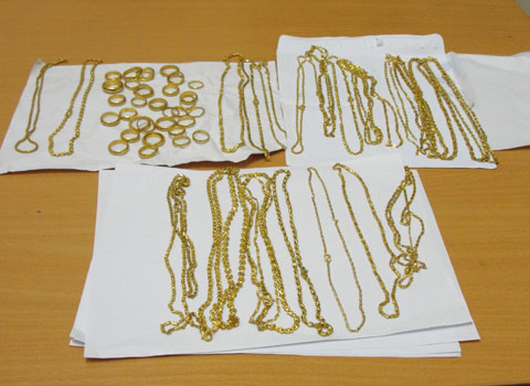 Qua khe cửa, chị Xuyên nhìn thấy tên cướp thò tay qua ngăn tủ kính đã mở sẵn, vơ toàn bộ số vàng trang sức bày trong đó cho vào túi quần rồi chạy ra cửa. Theo nữ chủ tiệm, lúc này trong tủ kính có khoảng 164 chỉ gồm dây chuyền, nhẫn, vòng, trị giá 636 triệu đồng.