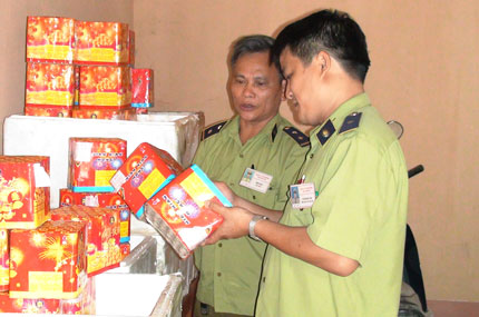 Lãnh đạo Đội QLTT huyện đã cử 2 cán bộ của Đội đến ngay hiện trường. Khi đến đúng địa chỉ được báo tin, các cán bộ QLTT đã phát hiện nam thanh niên cùng 6 thùng xốp như tin báo đang đứng gần nhà chị Bàn Thị Hường. Anh Nguyễn Văn Định, cán bộ Đội QLTT đã xuất trình Thẻ kiểm tra thị trường và đề nghị nam thanh niên cho kiểm tra bên trong thùng xốp. Nghe thấy vậy, nam thanh niên đã vội vàng bỏ chạy theo Quốc lộ 3 về hướng thành phố Thái Nguyên. Anh Nguyễn Văn Định đã mời chính quyền địa phương và gia đình chị Bàn Thị Hường ra chứng kiến sự việc. Sau đó, tổ công tác tiến hành mở 6 thùng xốp thì phát hiện bên trong mỗi thùng có 12 hộp pháo hoa; mỗi hộp có 36 quả pháo; tổng cộng là 72 hộp pháo có ghi chữ nước ngoài. Tổ công tác đã đưa số pháo trên về tạm giữ tại kho của Đội QLTT Phú Lương để tiếp tục làm rõ và xử lý theo quy định (ảnh).
