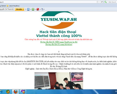 Tại website yeusim, một người tự xưng là Hoàng Kỳ Anh, sinh viên năm thứ 4, một trường đại học ở Hà Nội, chia sẻ cách hack tài khoản của nhà mạng Viettel. Theo đó, người muốn hack thẻ cào phải có sim Viettel với số dư lớn hơn 32.000 đồng và hoạt động trên 15 tháng.