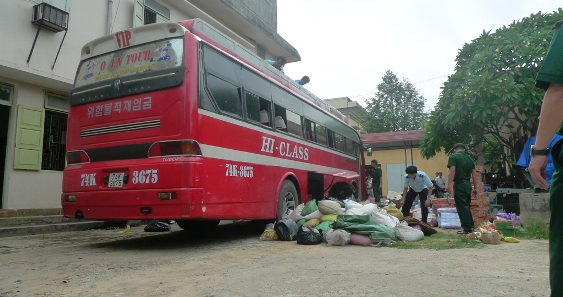 Lúc 10h 30 phút ngày 12/9, tại trạm Tân Hợp (Cổng B, Khu kinh tế thương mại Lao Bảo- Quảng Trị) khi lực lượng chức năng đang kiểm tra theo thủ tục chiếc xe khách 45 chỗ ngồi mang BKS 74K-3675 lưu thông hướng Lao Bảo- Đông Hà, thì bất ngờ tài xế nổ máy, rồ ga, húc đổ cổng barie tháo chạy về hướng Đông Hà.