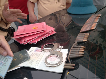 Nhưng khi Trung tá Hoan lôi từ trong gầm ghế sau 1 bọc nilon thì khuôn mặt của Ngọc nhanh chóng chuyển sắc. Hơn 40 viên đạn của súng quân dụng và chiếc còng số 8 cùng rất nhiều phôi sổ đỏ đã được phát hiện…